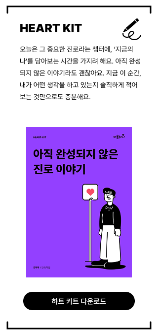 오늘 나눈 내용을 더 깊이 생각해 보고, 일상에서 실천해 볼 수 있도록 ‘하트키트(HEART-KIT)’를 준비했어요.