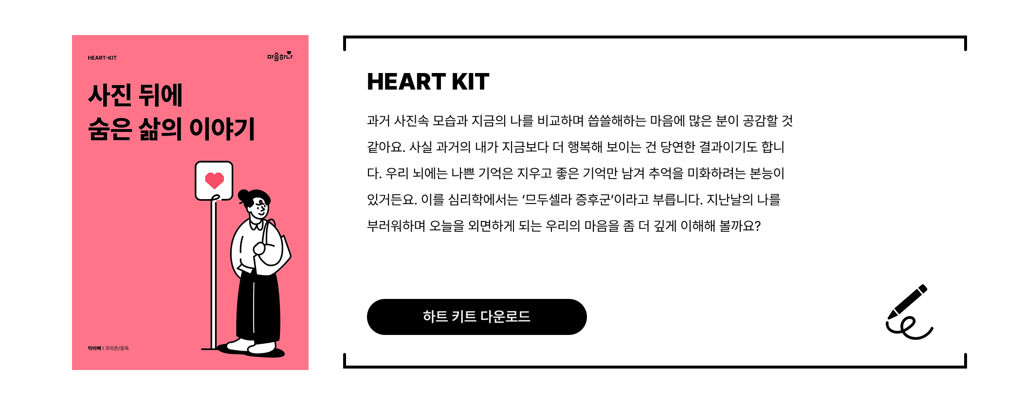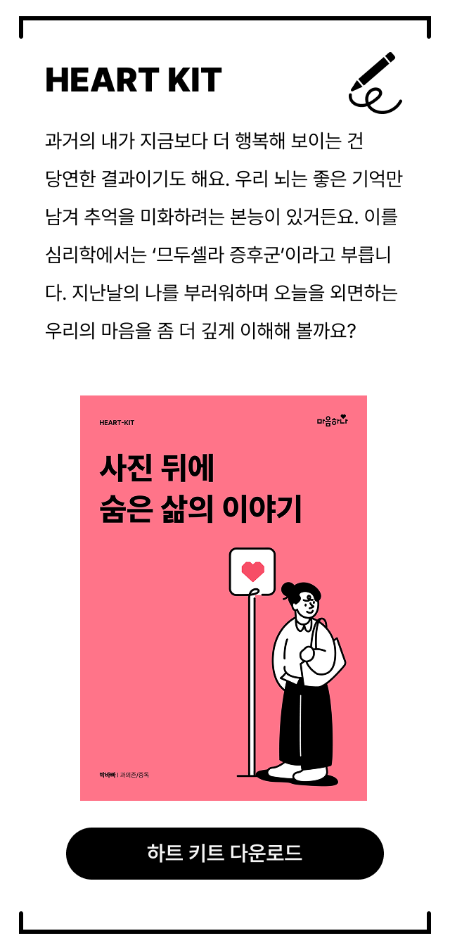 하트키트를 통해 과거에 머물던 시선을 조금씩 현재로 옮겨올 수 있기를 바랍니다.