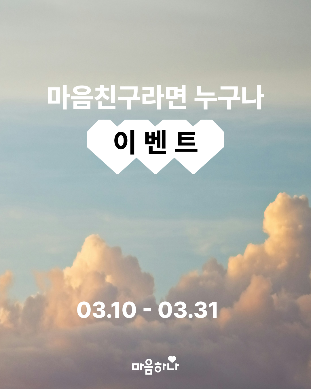 3월에 만난 마음하나, 환영해요! Event 1. 신규 회원 가입 이벤트 EVENT 2. 친구 추천 이벤트 EVENT 3 마음톡 댓글 이벤트
