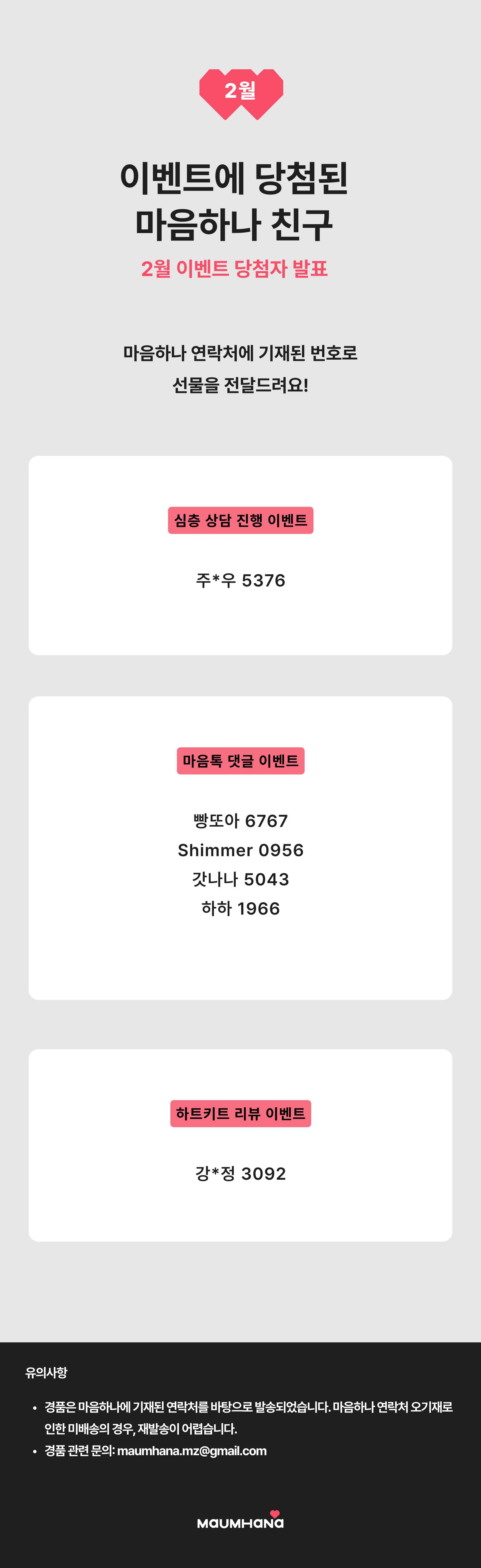 이벤트에 당첨된 마음하나 친구들 💖